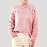 Complete your spring wardrobe with the Emma women’s spring cable high-neck sweater – a refined blend of texture, comfort, and everyday style.