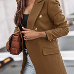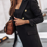 • Refined Double-Breasted Design: Gold-toned buttons add a touch of sophistication and highlight the blazer’s tailored lines.