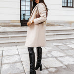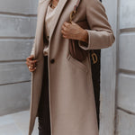 Double-Breasted Design: The structured double-breasted closure adds a timeless, chic touch to the coat.