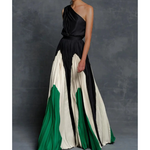 Vibrant Pleated Skirt: The bold color-block design with pleated detailing adds texture and visual interest, making this dress truly unique.