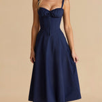 Complete your wardrobe with the Bonnie floral chic corset midi dress – a stylish combination of structure, elegance, and everyday versatility.