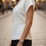 Clean V-neck detail: The open neckline adds a refined touch, giving the blouse a timeless and polished appearance.