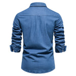 Light Blue Denim: The soft light blue hue gives a fresh, modern update to the classic denim shirt, making it easy to pair with any outfit.