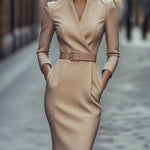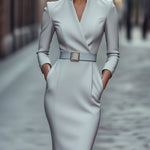 Defined belt detail: The integrated belt adds structure and visual focus, enhancing the dress with a polished and sophisticated finish.